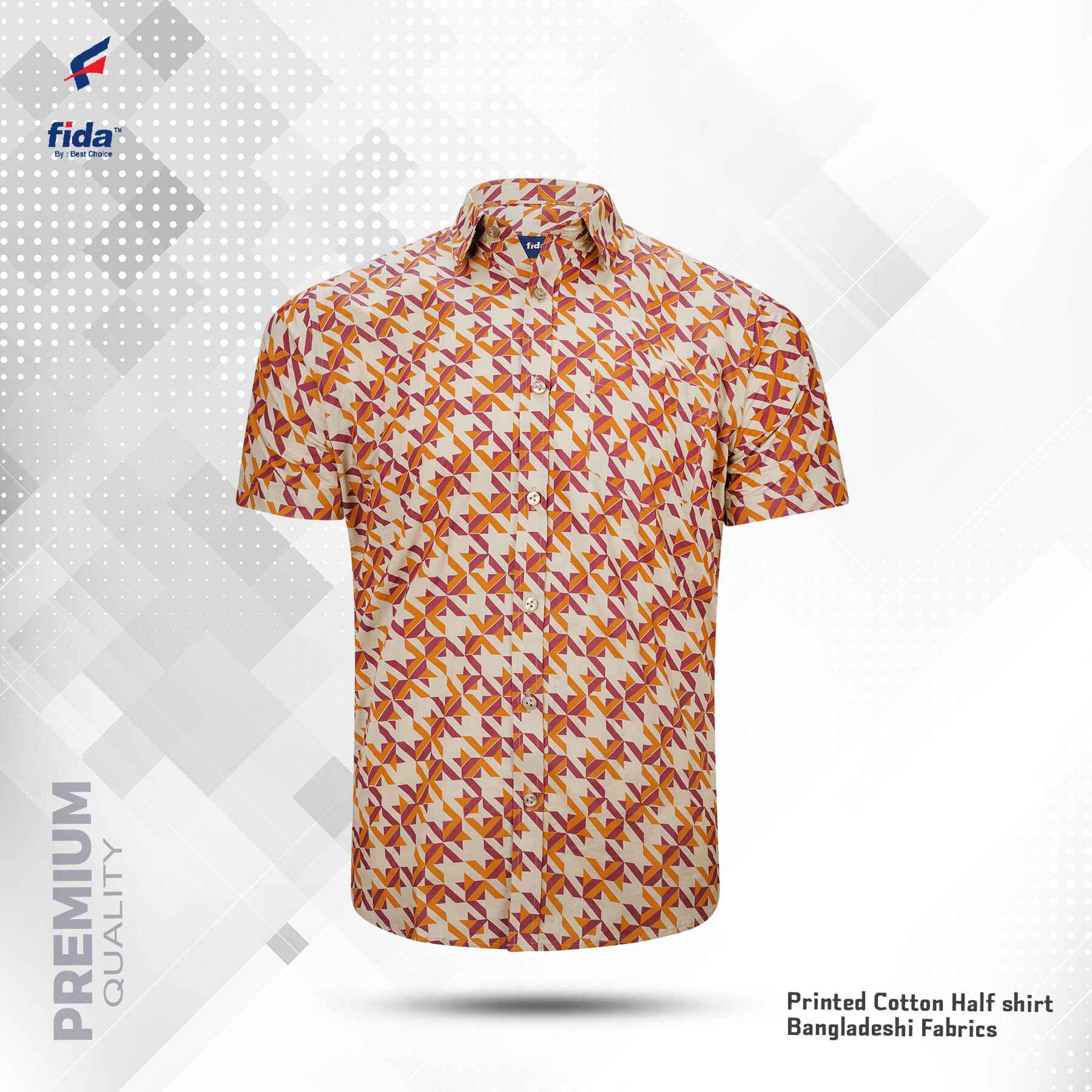 Fida Men's 100% Cotton Printed Half Sleeve Shirt 15270